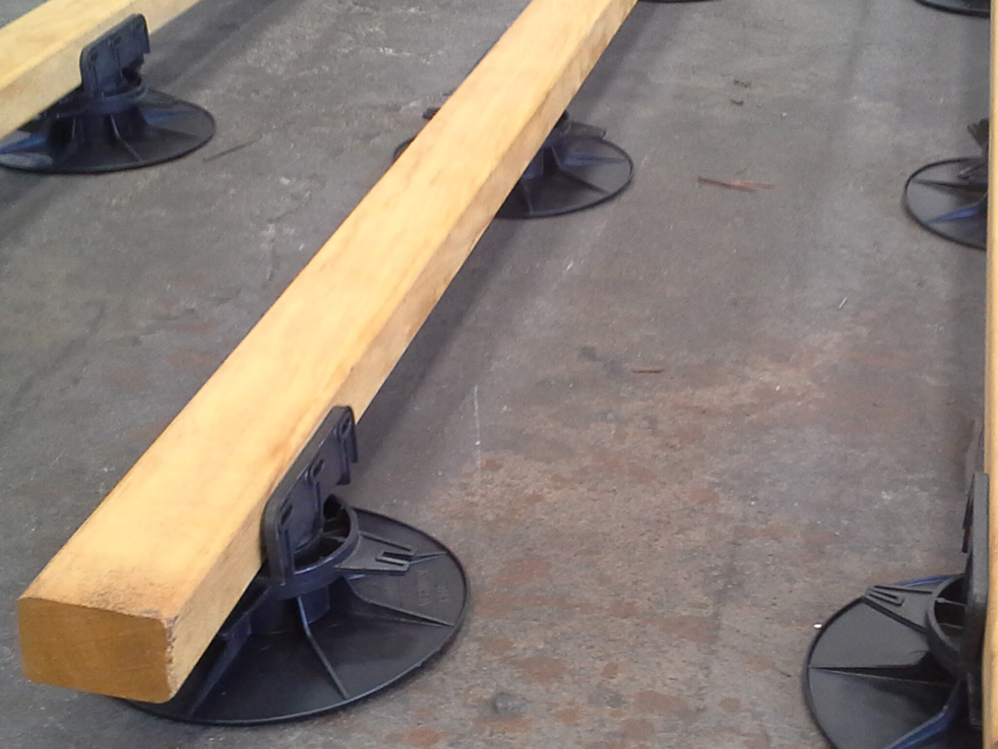 Posez vos plots sur un sol stable et compacté (terre, gravier ou dalle), puis ajustez leur hauteur à l’aide des bagues rotatives pour obtenir une surface parfaitement plane. Respectez un entraxe adapté à vos lambourdes pour garantir la stabilité de l’ensemble.