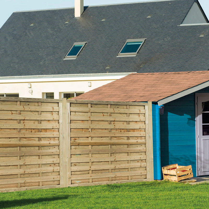 Un panneau occultant en pin traité, réversible et disponible en version droite ou cintrée, pour une intégration parfaite dans votre jardin.
