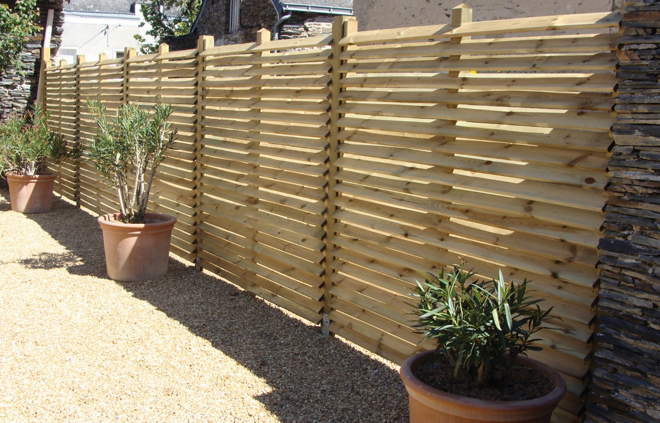 - Les liteaux en pin 22×42 , espacés régulièrement, permettent de filtrer la lumière tout en laissant passer l’air.
