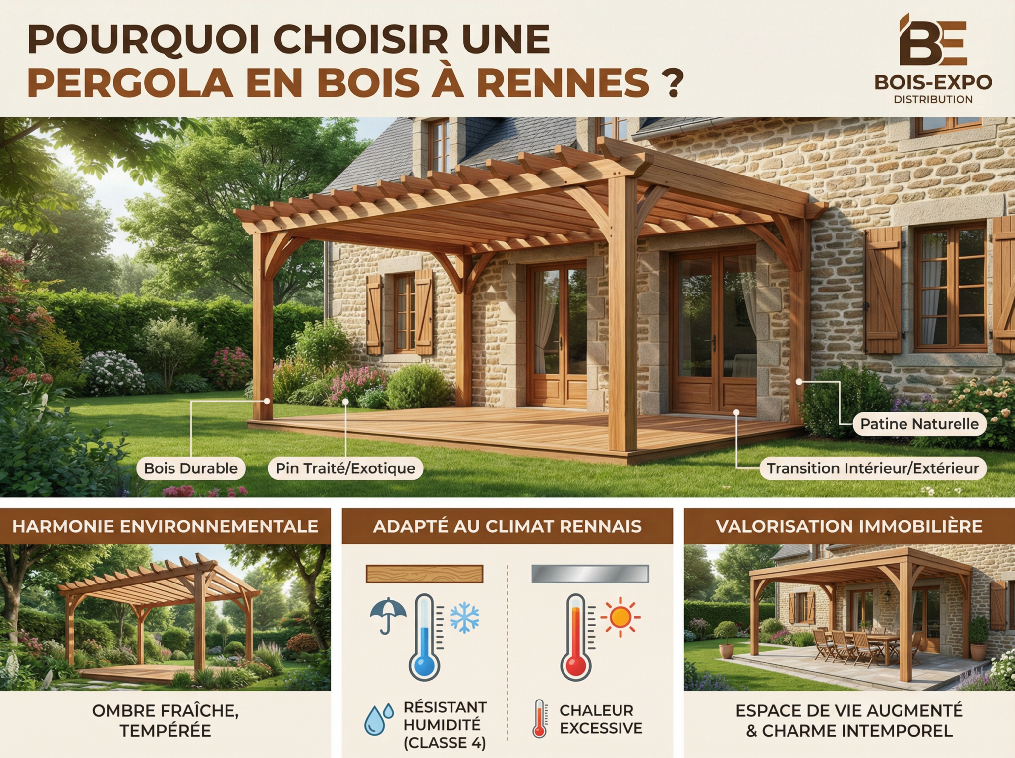 Nos solutions de pergolas en bois chez Bois Expo Distribution à Rennes