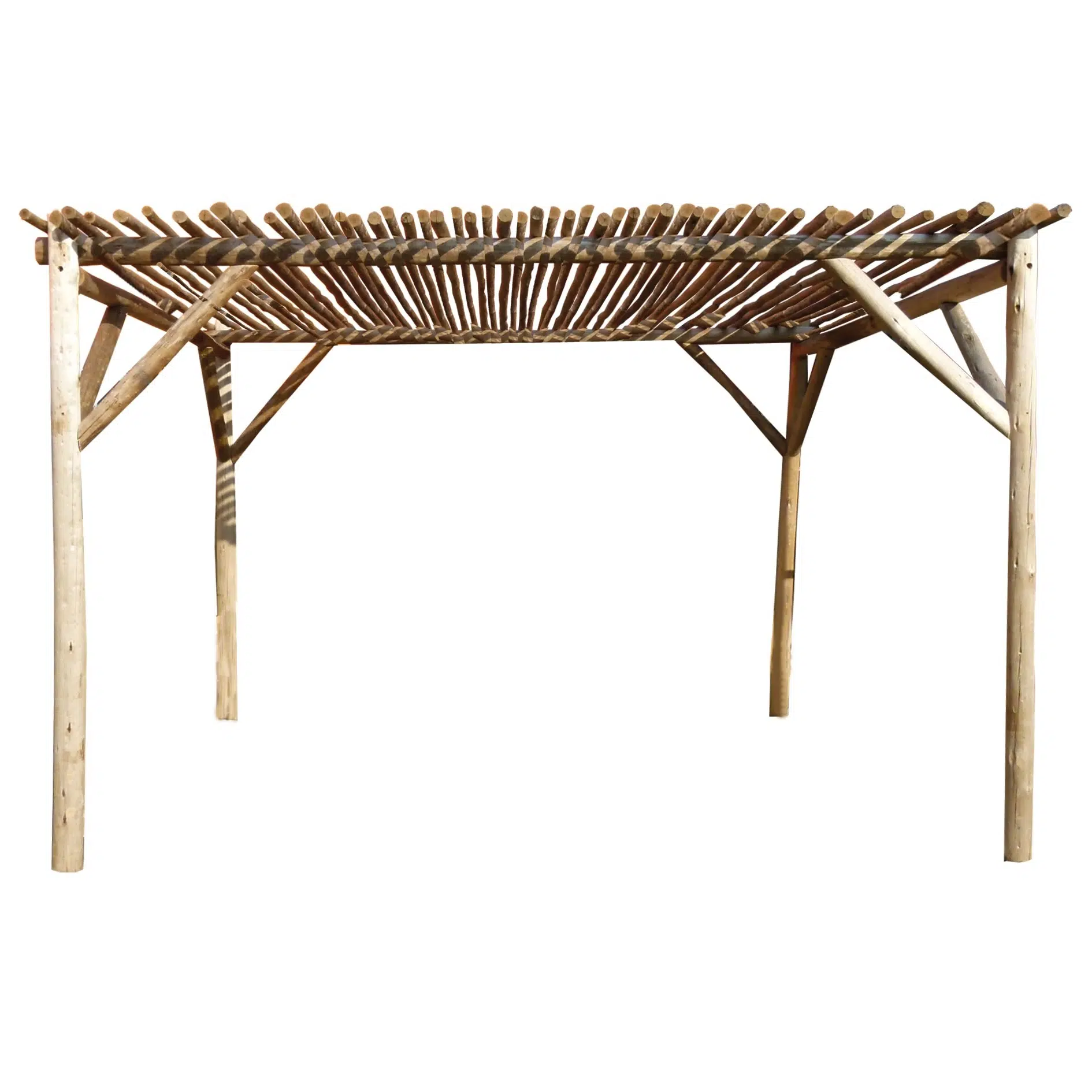 La pergola Lapas en rondins d’eucalyptus traité crée un espace ombragé et convivial, parfait pour profiter de votre extérieur.