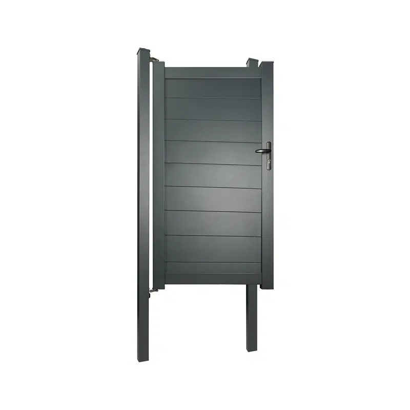 Portillon prêt à poser en aluminium thermolaqué texturé, conçu pour s’intégrer parfaitement à tous types de clôtures. Résistant, moderne et sans entretien.