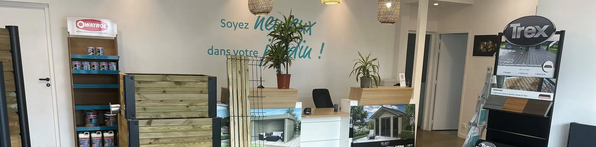 Notre équipe vous accueille dans une zone exposition de nos terrasses, pergolas, carports, abris, brise-vue, panneaux et clôtures. Nos experts bois vous conseilleront dans vos aménagements sur-mesure en bois européen, bois exotique ou bois composite. Nous réaliserons vos plans et nous déplacerons chez vous si votre projet le nécessite.